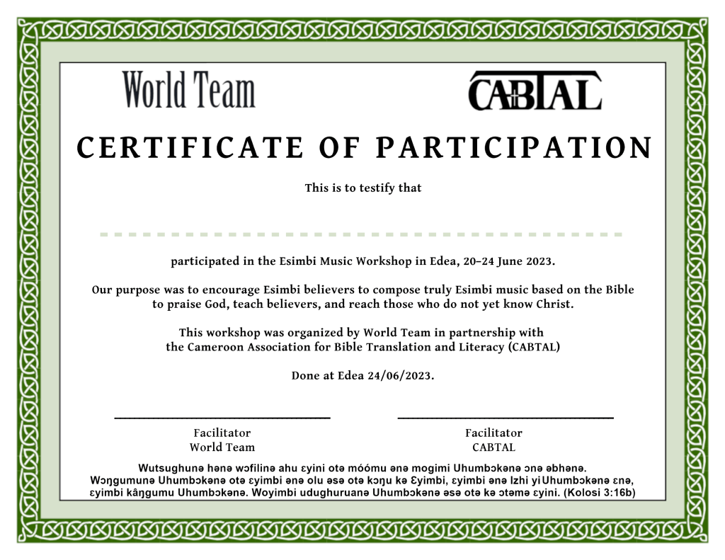 Africans value things like certificates of participation and workshop handouts more than Americans tend to because they are not constantly bombarded with such things as magazines, flyers, and bulletins. So we have spent a lot of time over the last few weeks putting together certificates and handouts that we hope will be not only useful but tangible evidence of our love for them and the value we place on their culture.