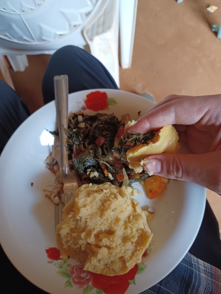 We ate primarily African food—corn fufu, cooked greens, rice, beans, and tuberous vegetables, as well as small bits of chicken, fish, or beef. The food was tasty, but we were never sure what the meals would consist of or when they would be served, and this was hard for our “mature” bodies to adjust to, though the interns were resilient and managed the situation well.
